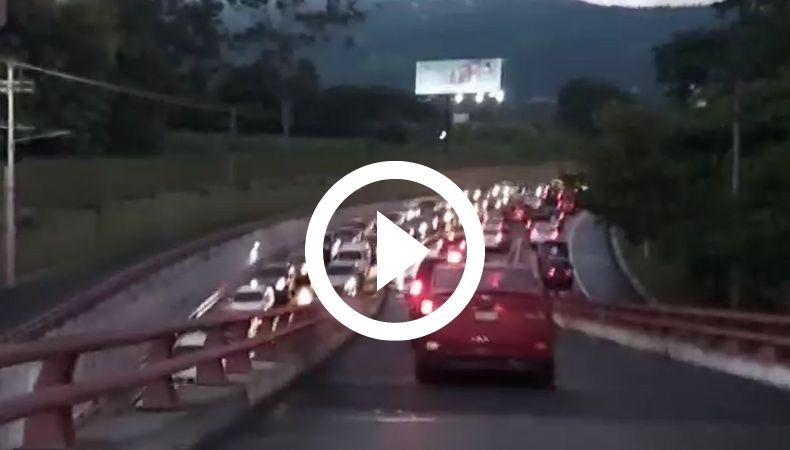 A esta hora de la tarde, así se encuentra el flujo vehicular buscando incorporarse a la avenida Jerusalén, desde el redondel Naciones Unidas y su paso a desnivel.