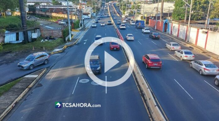 Tráfico fluido en ambos sentidos de la carretera Panamericana, tramo Los Chorros, zona ex báscula, Santa Tecla.