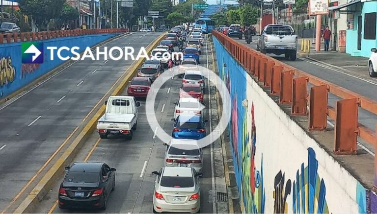 Claudia Martínez nos detalla fuerte carga vehicular en el bulevar Constitución hacia la Plaza Divino Salvador del Mundo.