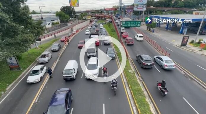 Es complicado en ambos sentidos, así esta el tráfico sobre la 49 Av. Sur, a la altura del inicio del Monumento Hermano Bienvenido a Casa, lo mejor es que busque vías alternas para evitarse contratiempo en su camino, pues los vehículos avanzan prácticamente a vuelta de rueda.