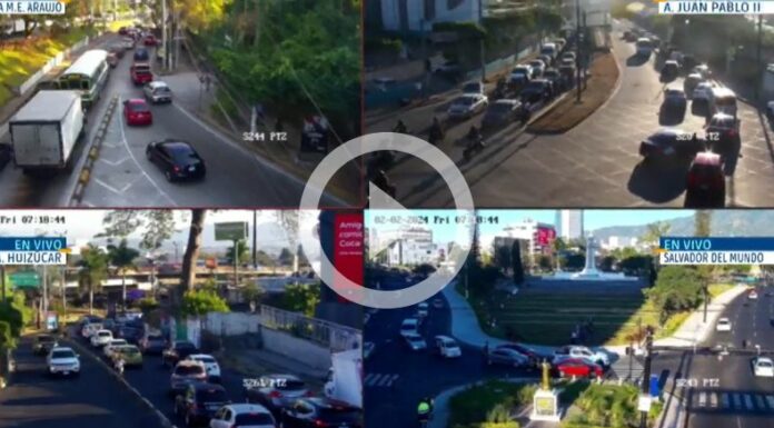 Desde el sistema de videovigilancia, le mostramos el tráfico que se tiene en: el Salvador del Mundo, Alameda Manuel Enrique Araujo, Antigua calle a Huizúcar, Alameda Juan Pablo II.