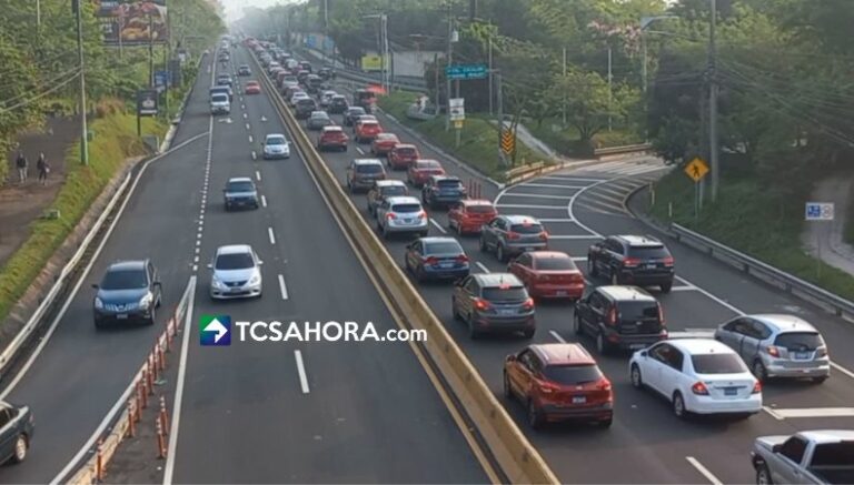 Fuerte tráfico vehicular en la Avenida Jerusalén, hacia el redondel Masferrer.