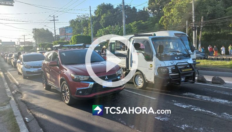 Un accidente de tránsito en el kilómetro 23 de la Carretera Panamericana. Tómelo en cuenta si piensa transitar por la zona, con sentido hacia San Salvador, porque el tráfico se ha tornado complicado.