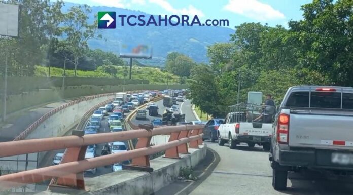 A las 2:44 pm se reportaba complicado el paso en la incorporación del bulevar Monseñor Romero hacia Los Próceres. Los automovilistas avanzan a vuelta de rueda.
