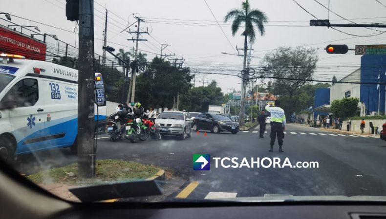 Un accidente de tránsito se reporta en alameda Manuel Enrique Araujo, frente a Hospital El Salvador. Este siniestro lo protagoniza un automóvil y una motocicleta. Además, ha generado un poco de congestionamiento en la zona.