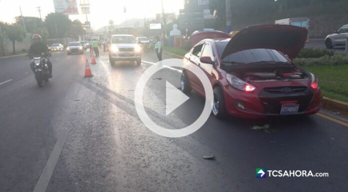 El accidente se registró hace unos minutos en la incorporación del Bulevar de los Próceres, con sentido hacia el Bulevar Monseñor Romero y Alameda Manuel Enrique Araujo.