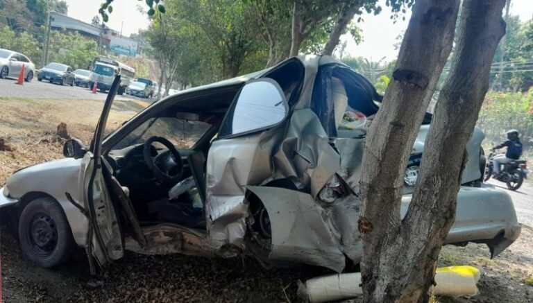 De acuerdo con lo que logra apreciarse en las fotografías, un vehículo particular se salió de la vía y terminó impactando contra un árbol.