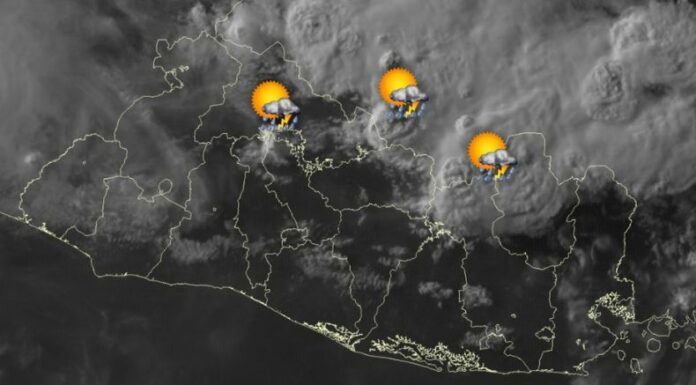 Se registran tormentas fuertes con abundante actividad eléctrica al norte de San Salvador y entre los departamentos de Chalatenango y Cabañas. Continúan lluvias en la zona norte oriental.