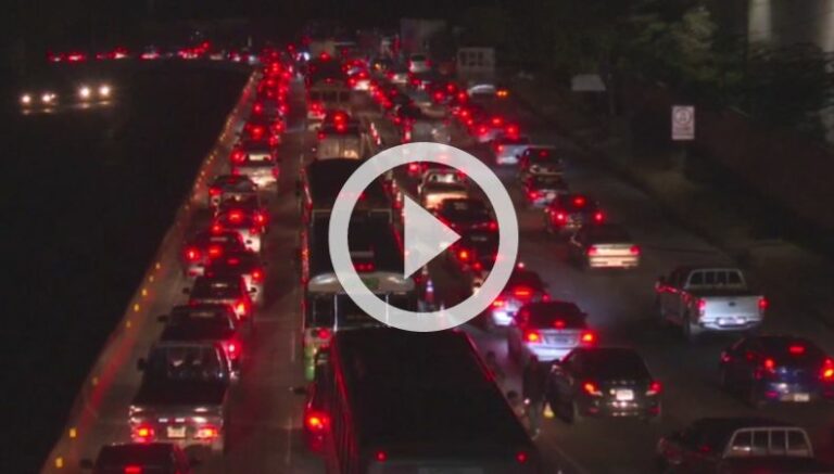Esta noche, se registra tráfico lento en la carretera Panamericana, a la altura de la salida de Santa Tecla, en dirección hacia el tramo de Los Chorros, Occidente del país.