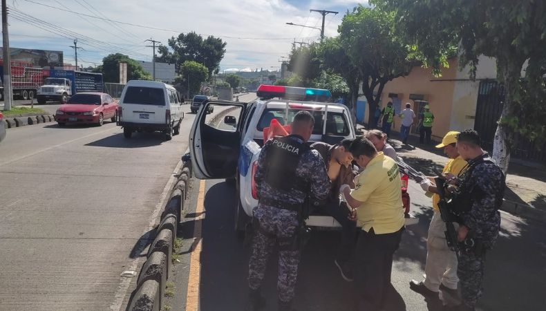 Las dos personas fueron identificadas como: Pedro José González Ortega, de 63 años, quien tenía trauma en miembro inferior derecho, por su condición, fue traslado al hospital Zacamil, (era el peatón). Mientras que el motociclista es Luis Alexis Navidad Menjívar, de 18 años. Comandos indicó que presentaba un trauma de clavícula.