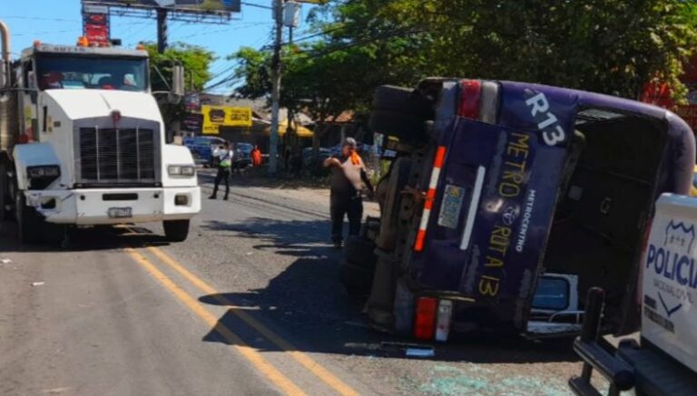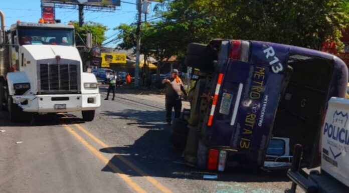 Mientras que, dos personas resultaron con lesiones leves en un accidente de tránsito entre un autobús y una rastra, sobre el km 38 de la carretera Panamericana, a la altura de la entrada a Zapotitán.