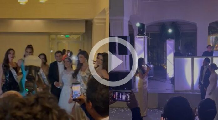 Los videos se han viralizado a través de TikTok, donde se puede ver quienes eran las integrantes que bailaron, cantaron y disfrutaron al lado de los recién casados. Entre ellas se encontraban, Miss Chile, Celeste Viel; Miss República Dominicana, Mariana Downing; Miss Trinidad y Tobago, Faith Gillezeau; Miss Ecuador, Delary Stoffers, además de nuestra representante, la salvadoreña Isabella García-Manzo, quien hasta ofreció unas palabras a los festejados.