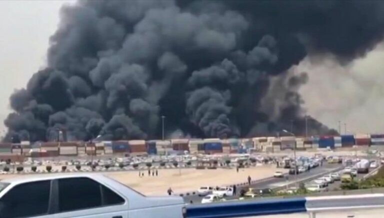 De acuerdo con los datos de la agencia Tasnim, la Oficina de Aduanas indicó que la causa fue probablemente “un incendio en el depósito de almacenamiento de materiales químicos y peligrosos del muelle del puerto”.