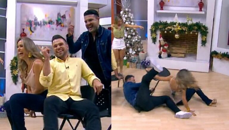 Henry Urbina, Mario Sibrián y Luciana fueron los tres últimos que se disputaron las sillas ganadoras. De un momento a otro, mientras se encontraban bailando alrededor de ellas, la música paró y la presentadora de “Liberadas”, no alcanzó a tomar asiento y cayó directamente al suelo. De inmediato, sus demás compañeros corrieron a ayudarla, pero las risas se apoderaron del momento.