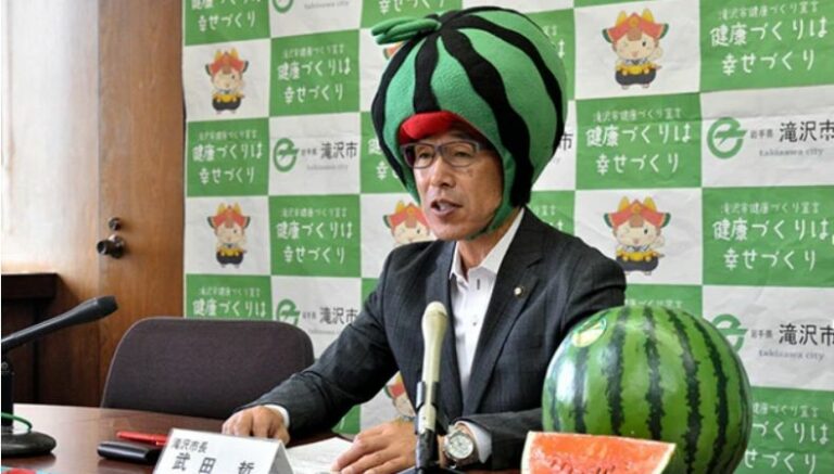 Según los medios, de esta forma, el alcalde quiso promover la festividad tradicional anual de Takizawa. El Festival de la Sandía, que tendrá lugar el próximo 11 de agosto.