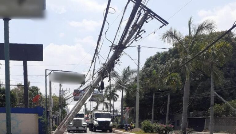 La Policía Nacional Civil (PNC) informó el paso cerrado en el km 13 ½ de la Troncal del Norte, en el carril que de Apopa conduce hacia San Salvador, a causa de que unos postes del tendido eléctrico están a punto de caer.