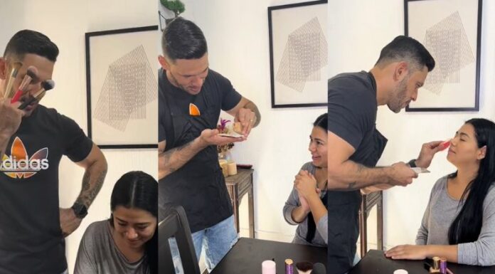 Por su parte, a lo largo del instante que como pareja compartieron se entretuvieron: puesto que, Carranza aplicó cada uno de los implementos necesarios para el resultado de un buen maquillaje, hasta la colocación de pestañas postizas.