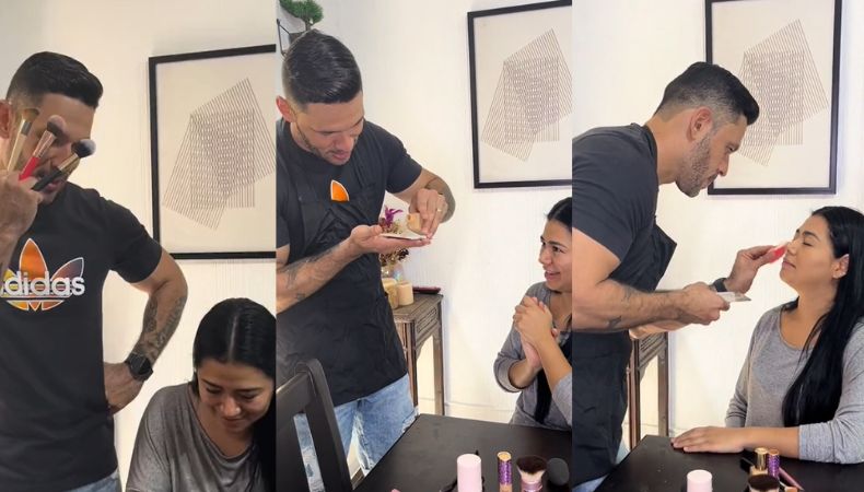 Por su parte, el comunicador externó que se disponía a maquillar a la madre de sus hijos con todos los productos y herramientas necesarias para poder llevar a cabo la aplicación de maquillaje. Asimismo, durante todo el procedimiento se observa que sigue algunas de las instrucciones que su pareja le mencionaba.