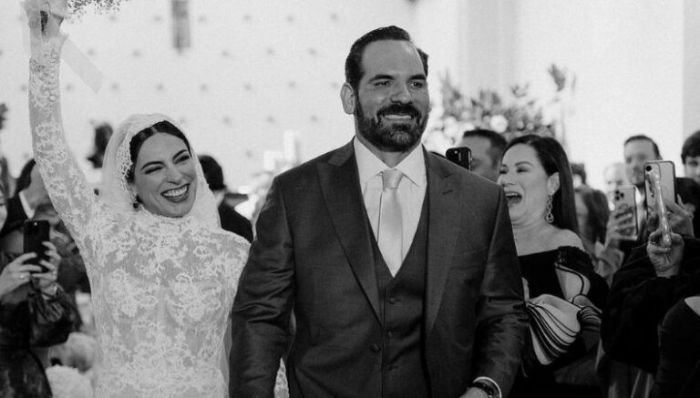 La propia actriz mexicana se encargó de compartir espectaculares imágenes del día de su matrimonio, donde se aprecia que luce un hermoso vestido blanco que complementó con una capa de cuello alto y con detalles de transparencias. Además, utilizó zapatillas color plata que estilizaron su elegante vestuario. Mientras que, Zacarías portó un traje negro, el característico de todo novio.
