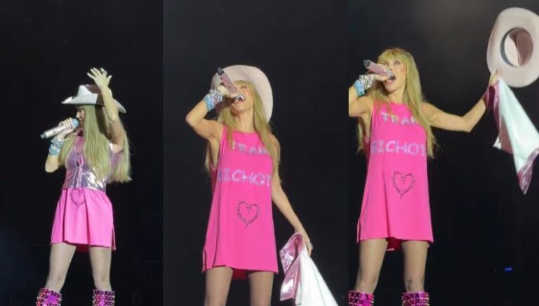 El momento se originó cuando la oriunda de México se posicionó en el escenario vestida completamente de rosado y luciendo chaleco, el mismo que se quitó para describir lo que se encontraba estampado en la blusa que portó en la pasada velada. Por consiguiente, las letras que se logran leer en el look de la cantante son nada más, ni nada menos que “Te amo, Bichota”.