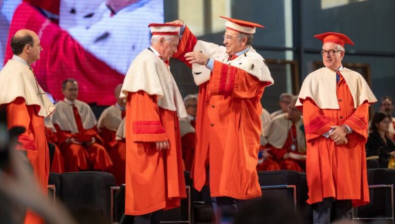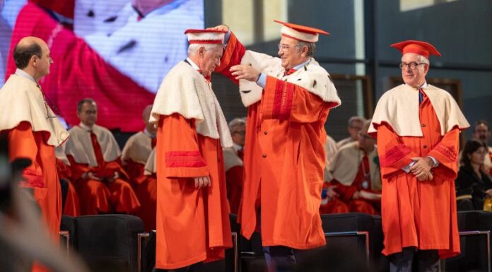 Luego de ponerse una capa, «Carletto» tomó su diploma entregado por Paolo Andrei, rector de la UniPr, y ofreció unas sentidas palabras.