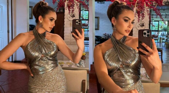 En una publicación reciente de Andrea Mariona, compartió un outfit con mucho brillo, por medio de unas deslumbrantes fotografías. Las mismas que, acompañó con escrito en el que asegura que durante este mes estará luciendo todo lo que tenga que ver con colores y mucho destello.