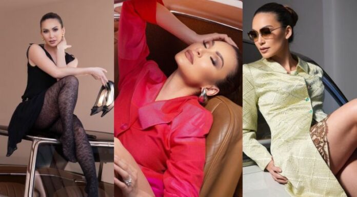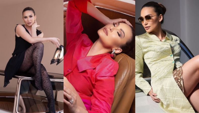 Además, en esta semana ha subido una serie de fotografías en el mismo automóvil Mercedes-Benz CLÁSICO 230, sin embargo, con un atuendo distinto, el día de ayer, subió una con un vestido y chaqueta en tonalidades magenta, y unos aretes de accesorio Bottega Veneta estilo gota plateados.
