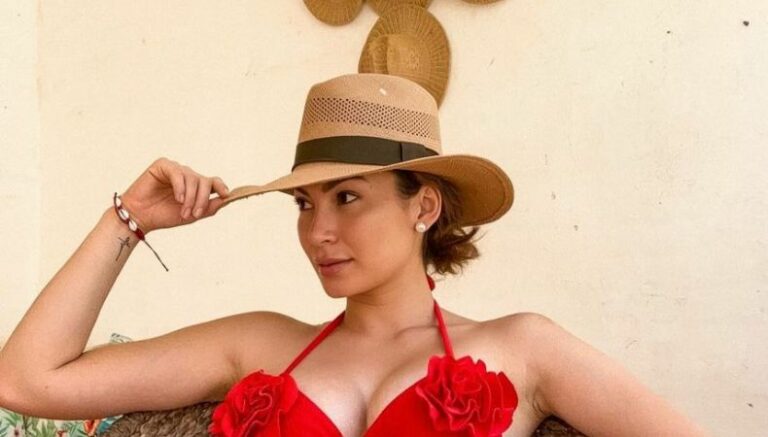En las fotos se aprecia que utilizó un traje de baño de color rojo y para estilizar aún más su look playero, tomó a bien agregar un sombrero que hizo que su atuendo luciera totalmente veraniego.