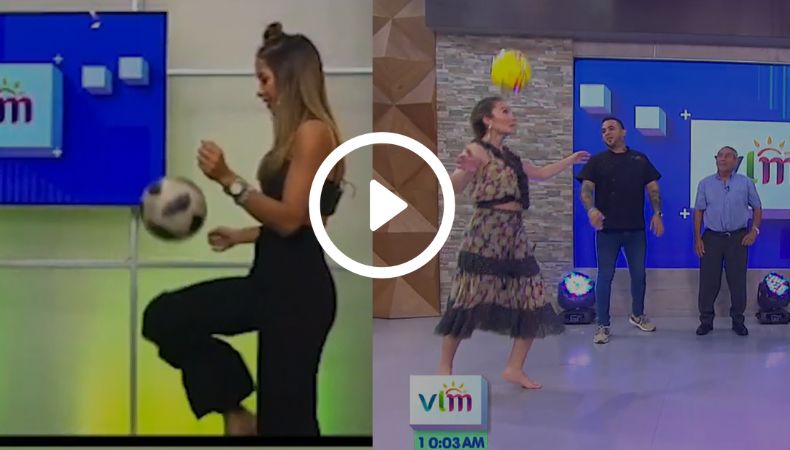 Las presentadoras de “Viva la Mañana”, además de brillar frente a las cámaras de televisión, también tienen talentos ocultos. Y ahora, resulta que nada más y nada menos que en el deporte. Durante la visita del entrenador de fútbol playa y finalista de “Salvadoreños Comprometidos”, Salvador Morataya, en el programa, uno de sus jugadores estrella en la escuela de futbol, probó las habilidades de Andrea Mariona en las “tecniquitas” del balompié.