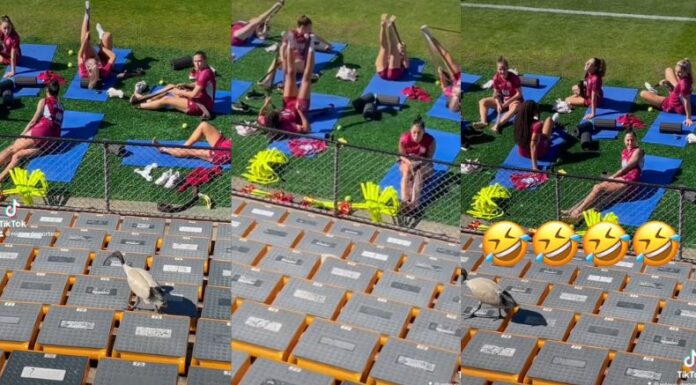 Las integrantes de la Roja detuvieron su calentamiento con el objetivo de analizar sus plumas blancas y pico alargado.