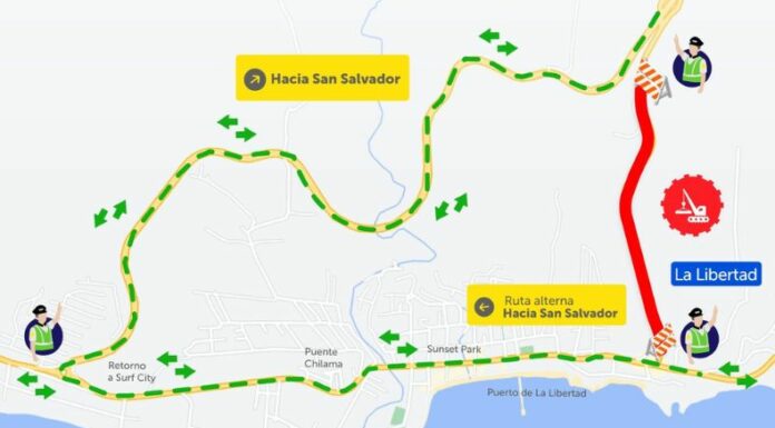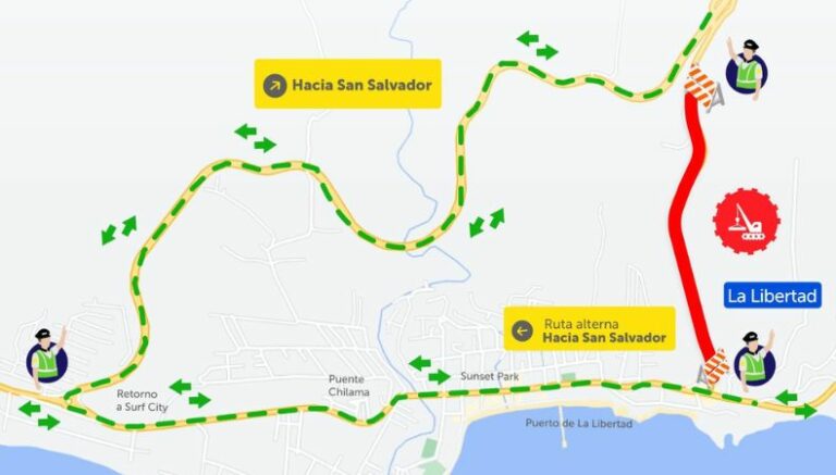 A partir de este lunes 15 de enero, el Ministerio de Obras Públicas y de Transporte (MOPT) ejecutará obras de terracería en un tramo de la calle al Puerto de La Libertad. Por ello, las autoridades anunciaron que habrá reorientación vehicular en horario nocturno.
