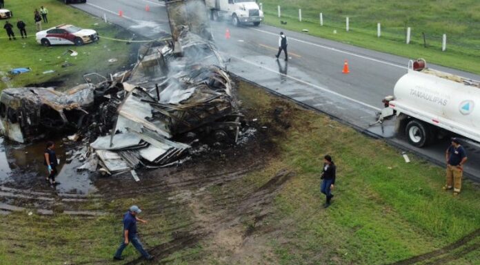 Hasta el momento se contabilizan 27 personas fallecidas, tras un aparatoso accidente de tránsito entre un tráiler y una camioneta. Por lo que provocó que la caja del cabezal se incendiara y las llamas alcanzaron hacia otros vehículos. El hecho ocurrió el día de ayer en Tamaulipas, México.