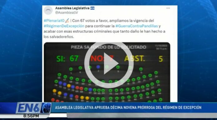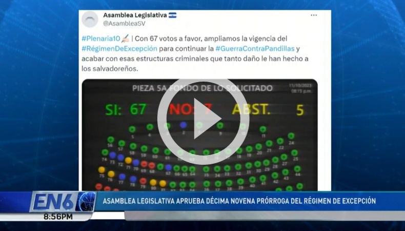 Con 67 votos a favor, la Asamblea Legislativa volvió a prorrogar la vigencia para el Régimen de Excepción en el país. Según estadísticas, más de 73,000 personas han sido capturadas desde que fue aprobada hace un más de un año.
