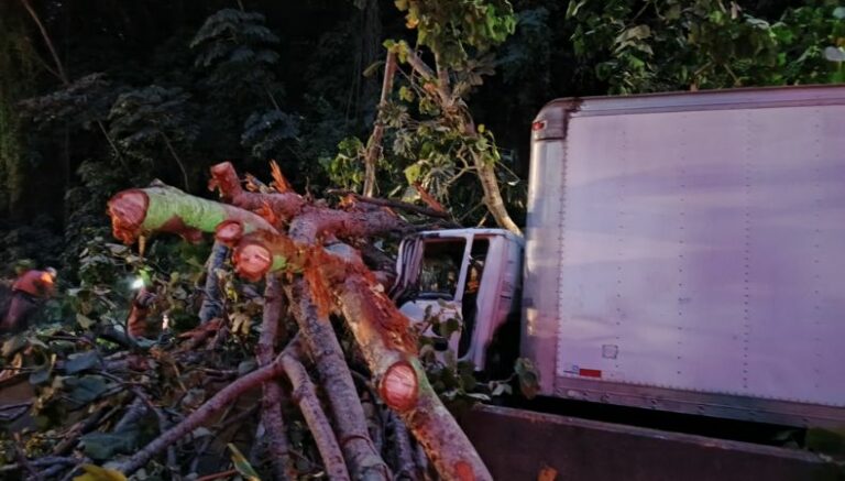La Alcaldía de Santa Ana Centro, informó en su cuenta de X, que un árbol de gran tamaño cayó sobre un camión. El hecho se registró a la altura del kilómetro 58 de la carretera que de Santa Ana conduce hacia San Salvador. Además, informaron que los elementos de Socorro llegaron para rescatar a una persona, a quien trasladaron a un centro asistencial.