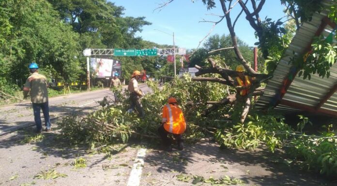 De igual manera, durante horas de la noche se atendió un hecho similar, la remoción de árbol caído que obstaculizaba el paso. Esto ocurrió en la colonia Chaparrastique, San Miguel. En esta ocasión sí fue de proporciones medianas, en cuanto al tamaño, y cubrió una buena parte de la arteria que conecta con las viviendas.