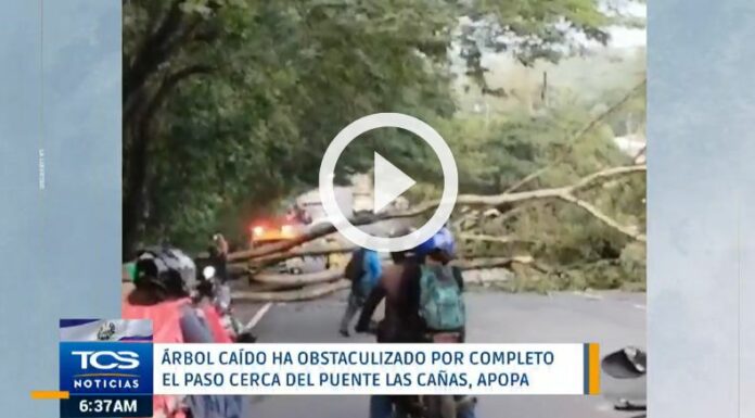 Desde tempranas horas de este día, internautas han reportado la caída de un árbol en la carretera Troncal del Norte, en la zona de la colonia Santa Teresa, metros después del puente Las Cañas, en Apopa.