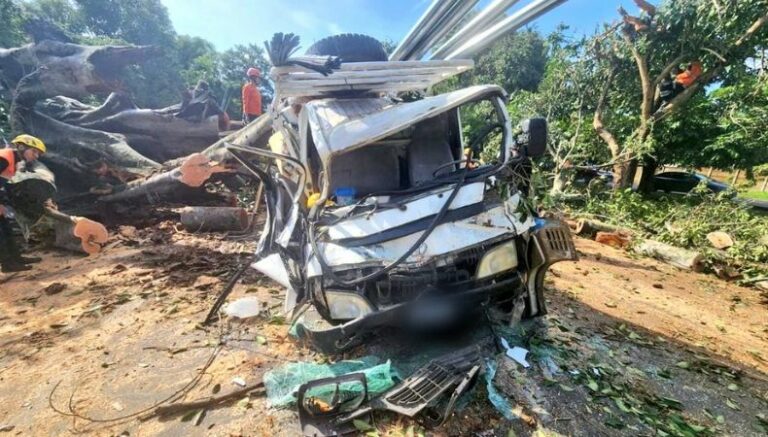 La Policía Nacional Civil (PNC), reporta un aparatoso accidente donde un árbol, de gran magnitud, cayó sobre un pick up, dejando como resultado varias personas lesionadas.