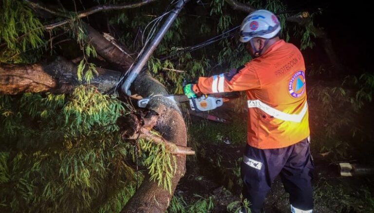 Debido a las lluvias que se registraron esta tarde, el equipo Táctico Operativo de Protección Civil, junto al Cuerpo de Bomberos, realizaron remoción de árbol que, al momento de caer, afectó un vehículo y obstaculizaba el paso vehicular.