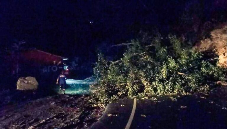 En información de última hora, la Policía Nacional Civil (PNC) reportó un árbol y rocas caídas sobre el kilómetro 79 de la carretera Troncal del Norte, a la altura del caserío El Relleno, en La Palma, Chalatenango.
