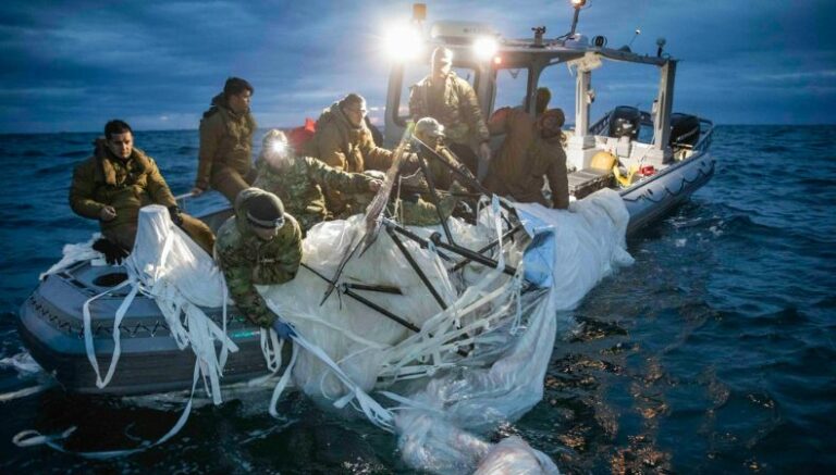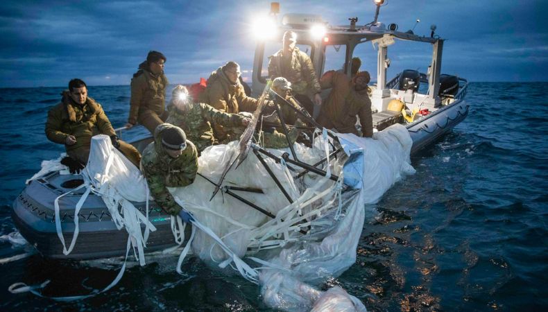 La Armada de Estados Unidos publicó Las fotos de la recuperación de los restos del globo espía chino en el océano Atlántico. El cual fue derribado el sábado por un caza estadounidense frente a las costas de Carolina del Sur.
