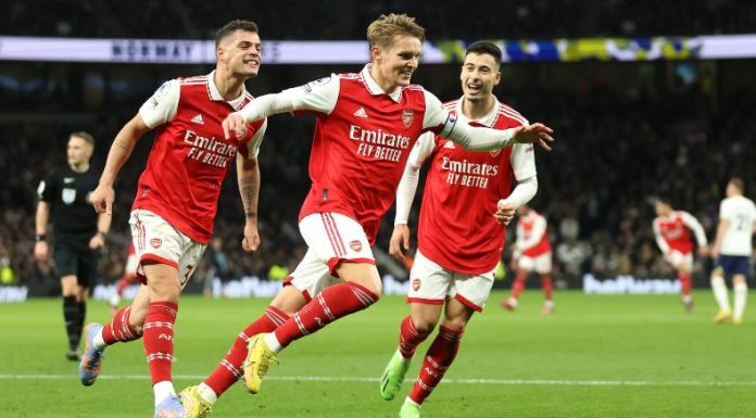 Al comienzo, ambas escuadras parecían muy inofensivas. A medida avanzaban los minutos, el Arsenal se sintió cada vez más cómodo y fue tejiendo cuantiosas jugadas de peligro. El primero llegó gracias a un errorazo de Hugo Lloris. El guardameta no pudo controlar un centro de Bukayo Saka y terminó por empujar el balón hacia su propia portería, al 14´ (0-1).