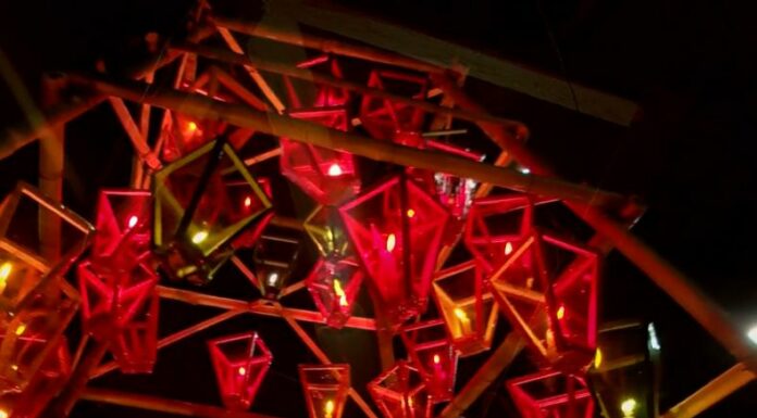 Además de los faroles, los visitantes observan ramas que simulan pequeños árboles de navidad, o algunas estructuras de madera que también forman parte de la decoración para esa fecha especial.