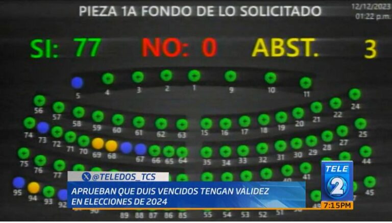 Con 77 votos a favor, 0 en contra y 3 abstenciones, se aprobó la posibilidad de que los salvadoreños, en El Salvador, puedan votar con su DUI vencido.