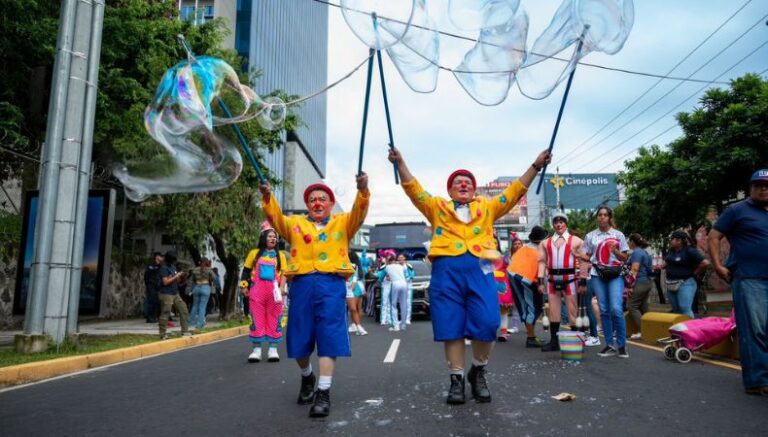 Del mismo modo, se observan bailarines, cachiporras, payasos, bandas musicales, zancos y mucho más, que se ha hecho presente en las principales calles del gran San salvador.