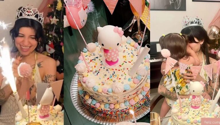 Asimismo, en las imágenes muestran un increíble pastel de Hello Kitty, un personaje que ama y que lleva tatuado en la piel. Por lo que, presuntamente estuvo celebrando junto a su familia en una reunión bastante íntima.