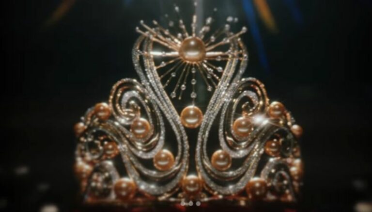 La corona está adornada con perlas doradas del Mar del Sur, el tono más raro del mundo, de acuerdo con la marca. «Un milagro creado en 377 pasos a lo largo de cinco años, este tesoro se cultiva a través del entorno más prístino y el máximo cuidado humano«, según Jewelmer.