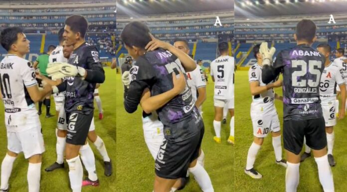 Luego del silbatazo final, sus compañeros del equipo blanco se fueron a abrazarle por su exhibición de buen juego. Pero la reacción más efusiva fue la del portero Mario González.