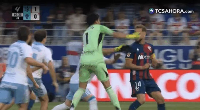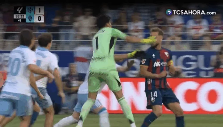 El Huesca ante Zaragoza ha terminado con violencia, cuando el portero Esteban Andrada se fue al centro del campo para protestar una doble caída de jugadores del equipo de Navarro en el área.