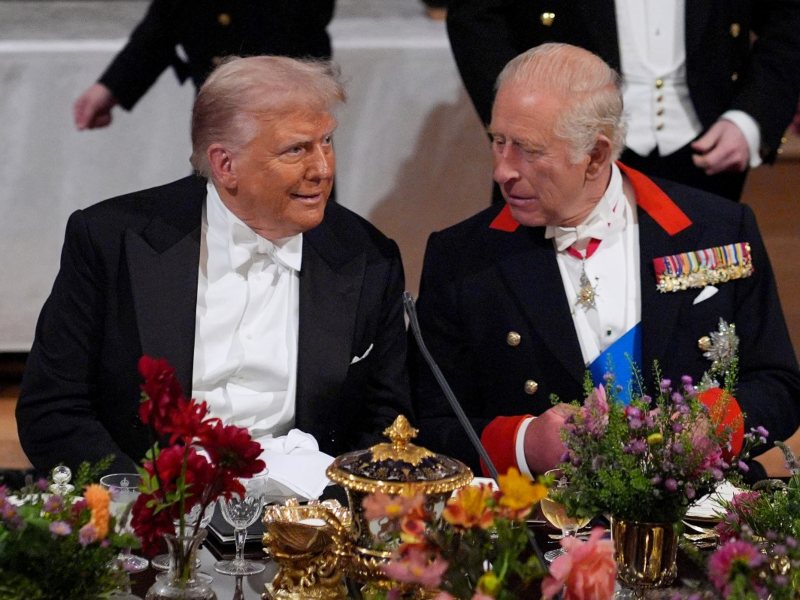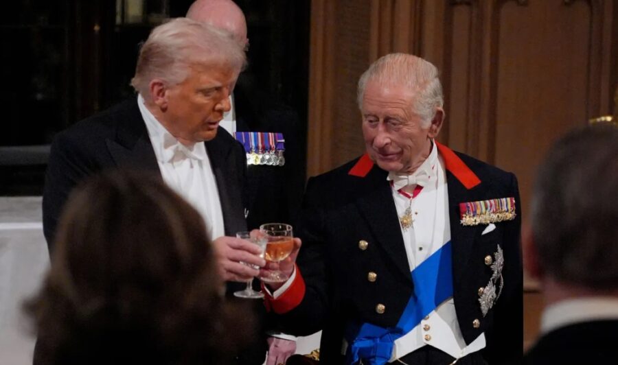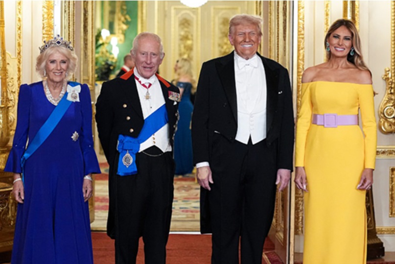 El Castillo de Windsor volvió a deslumbrar con su esplendor. La noche del 17 de septiembre, el rey Carlos III y la reina Camila ofrecieron a Donald Trump y a su esposa Melania, un banquete de Estado. El evento requirió seis meses de preparación. El escenario fue el majestuoso Salón de San Jorge, con techos góticos y 55 metros de largo. Allí se dispuso una mesa de casi 43 metros de extensión que reunió a 160 invitados. Entre los presentes destacaron empresarios de renombre como Tim Cook y Rupert Murdoch.
