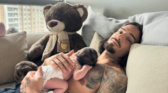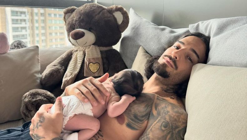 En las imágenes compartidas ante sus más de 63 millones de seguidores, se aprecia una foto, en el que está acostado junto a un oso de peluche, con su recién nacida durmiendo en su pecho. Asimismo, compartió un clip en su casa llena de flores, donde se observa con su hija en brazos bailando reggae al ritmo de Bob Marley.